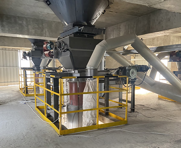 骨料散装机主要用于散装水泥及其它粉状物料,库底散装机安装于料仓下料平台,供汽车、火车等的罐形容器装料。主要由“卸料闸门”、“输送斜槽”、“弯头”、“下料接管”、“散装机”、“除尘器”、“斜槽风机”等组成。库内部分通过支架吊挂在水泥库内部,以10%的斜度放置,以使水泥料仓内的水泥粉呈流态化(此高压压缩空气由用户自备罗茨风机或由厂内压缩空气总管经减压后接入)。“出料连接槽”、“输送斜槽”在水泥库外按出料顺序连接同样以10%的斜度放置,砂石骨料散装机布袋,正常使用时打开。“卸料闸门”用来控制散装机装车时的水泥落料状态;“斜槽风机”用来使输送斜槽内水泥物料流态化。散装机为其主体设备,其下料头伸缩长度为1.6米,以适应不同车型的装车要求。